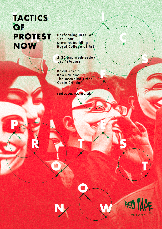 PictureTactics of Protestart, tactical media, design, tactical education, occupyRCA - Red Tape, London, February 1, 2012.http://redtape.rca.ac.uk/